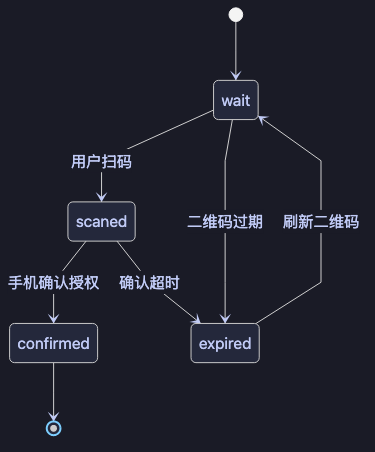 第一步拿二维码,第二步轮询二维码状态。它的状态机大致如下: